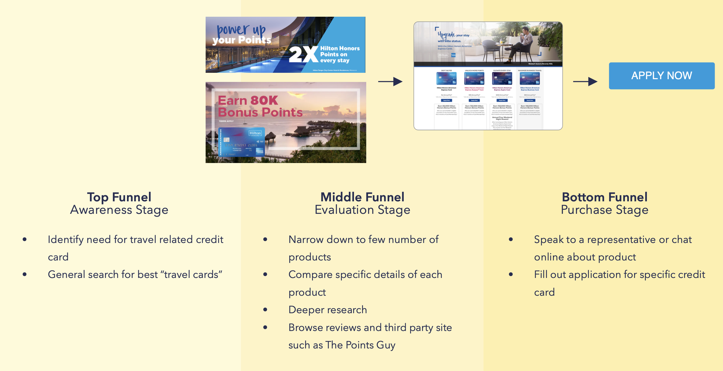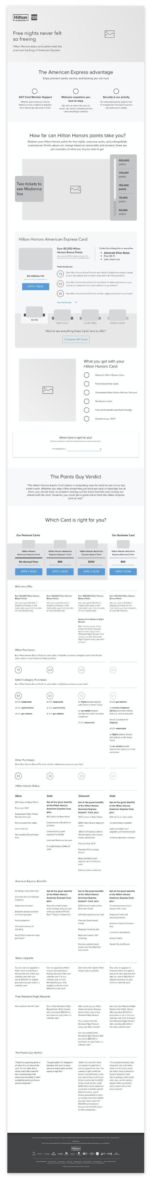 This is catered towards users who need more guidance in finding a card, they are starting their card search and are not familiar with Hilton Honors and are sure which card is right for them. Users have been researching content Content is organized with more information leading into the card products.