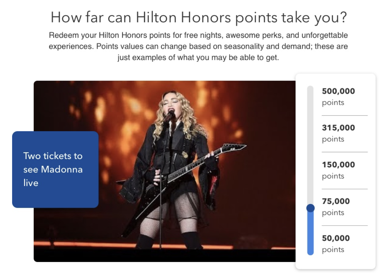 This page should get users excited and engaged about Hilton Honors points, benefits, and values