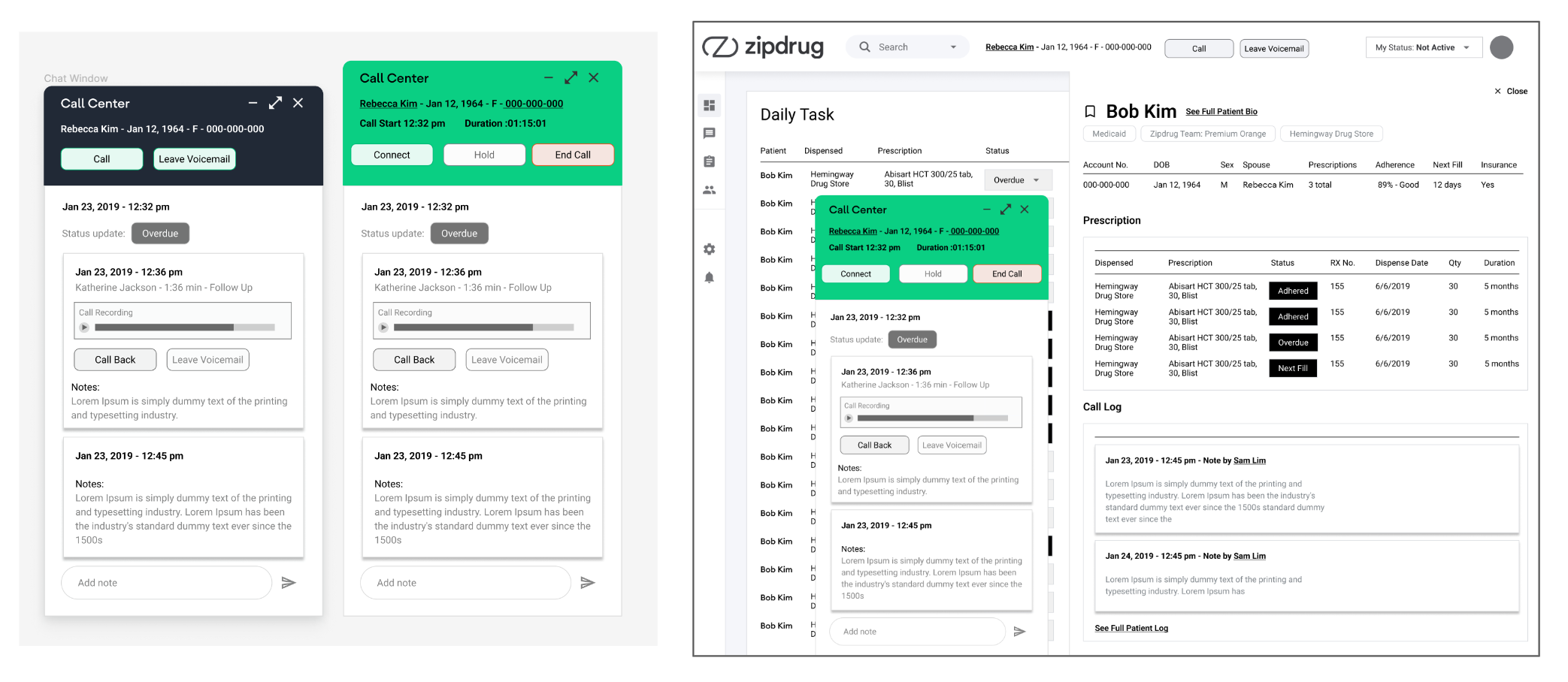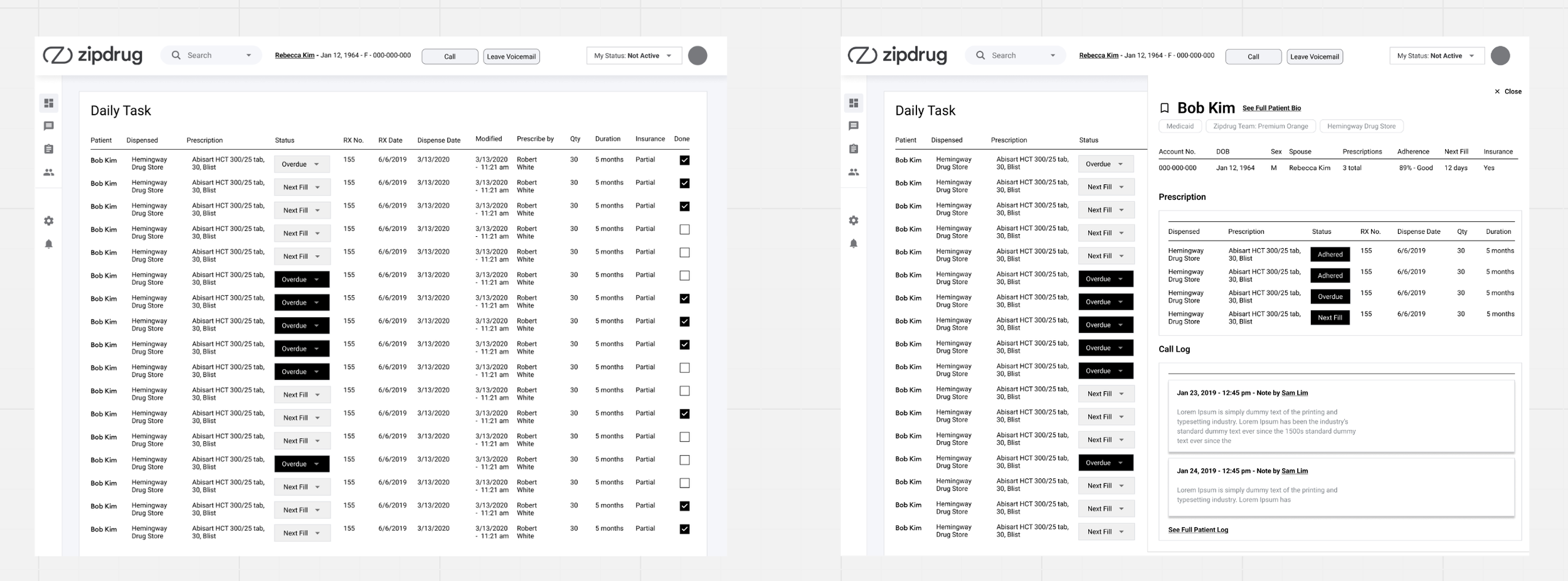 Zipdrug representatives are tasked with a daily list for outgoing calls. Zipdrug reps are encouraged to make as many calls as possible in a day. They are looking for a solution to help them work faster without sacrificing the capability to see critical patient information.