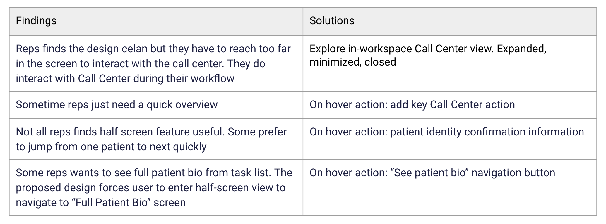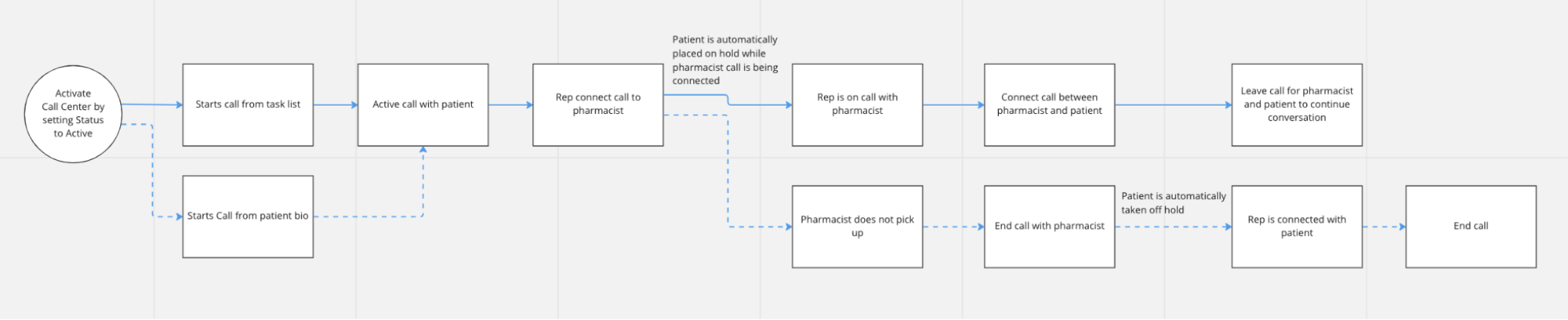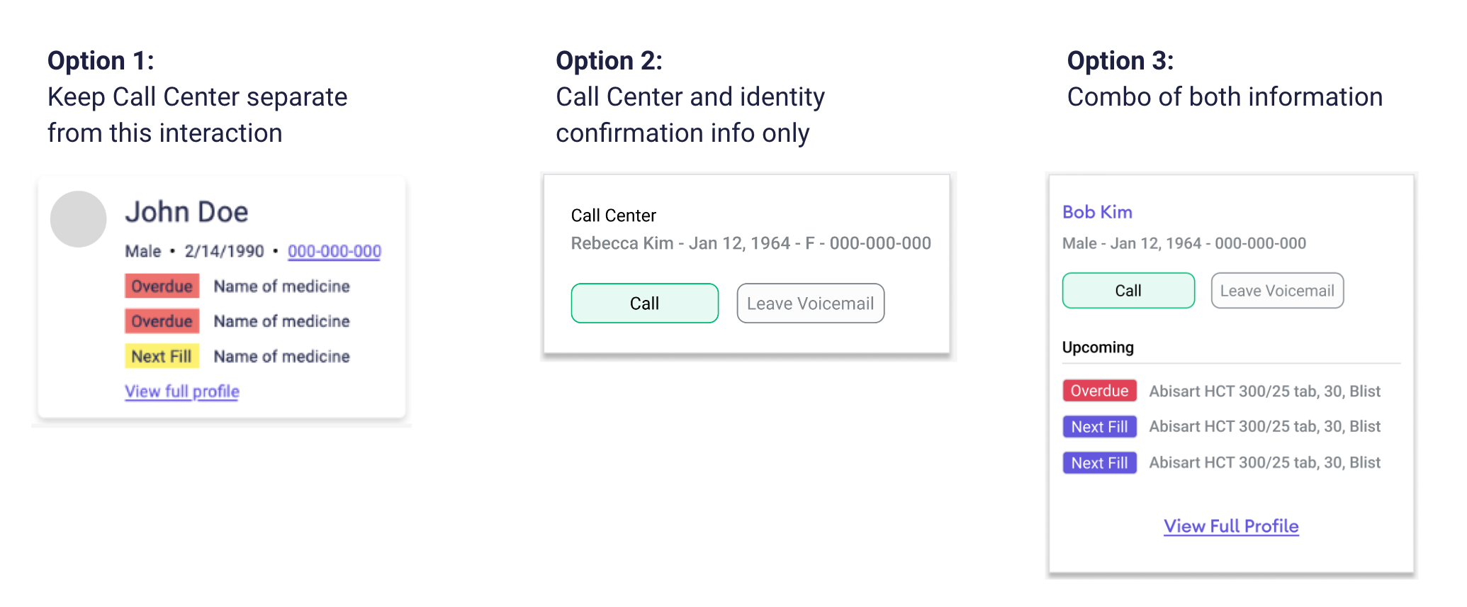 Reps would need features such as patient upcoming and overdue fill, Call Center - “call” and “leave a voicemail”, and “see full bio” CTA